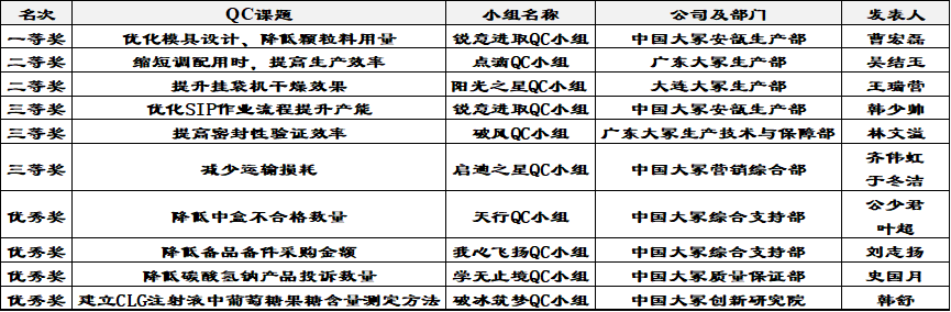 2024年度公司級QC小組活動(dòng)發(fā)表大會(huì)活動(dòng)于6月14日在綜合樓階梯教室順利召開。今年的QC小組活動(dòng)共收集到來自中國大冢、廣東大冢、大連大冢的38項(xiàng)申報(bào)課題,課題數(shù)量為歷年來之最,經(jīng)過課題材料初選、指導(dǎo)、再次審核及綜合預(yù)講的現(xiàn)場發(fā)表情況,最終甄選出10項(xiàng)課題參與到最終的現(xiàn)場發(fā)表階段。獲獎(jiǎng)情況如下: